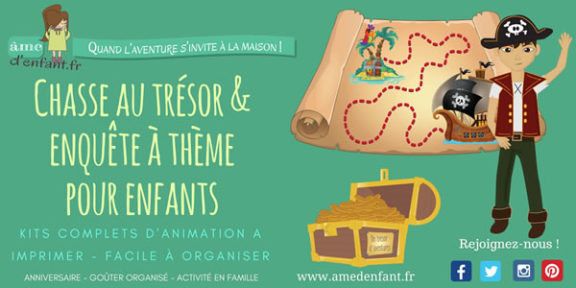 Un kit d’animation www.amedenfant.fr permet d’organiser une chasse au trésor ou une enquête policière pour enfant, facilement et rapidement, pour un anniversaire, un goûter organisé, ou tout simplement pour passer un bon moment en famille.