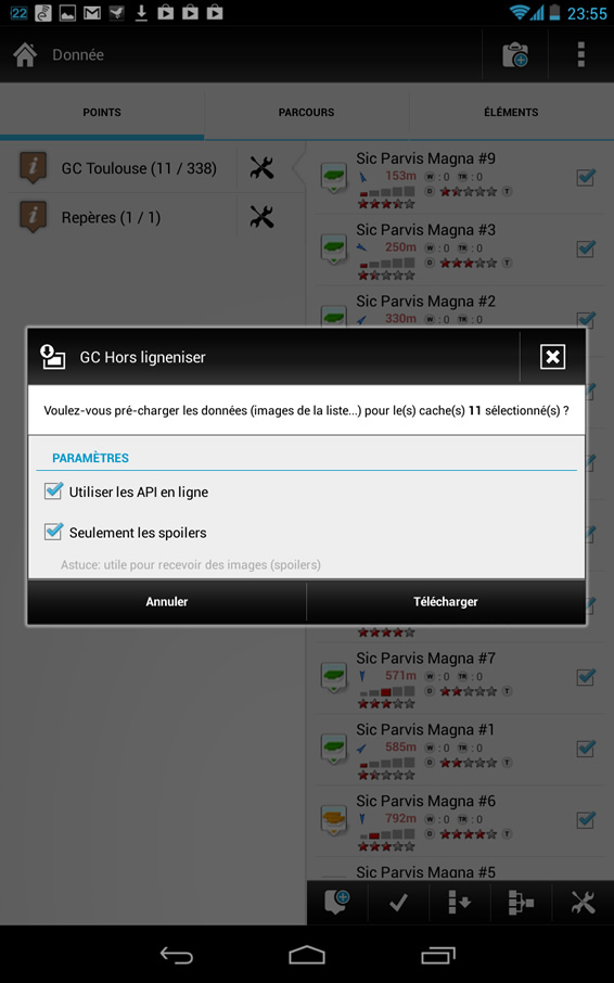 Attention toutefois, cette dernière opération nécessite la versions pro (et donc payante) de l’application Locus. Voici la marche à suivre pour télécharger les spoilers.