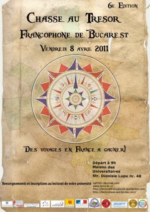 Note de ChAT : la chasse au trésor est repoussée au mercredi 20 avril 2011. Cf. l’article publié sur le site du Lectorat français de l’Université Polytechnique de Bucarest.