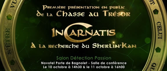 A noter : l’équipe du projet InCarnatis, proposant une chasse au trésor transmédia dans un univers Science-Fiction / fantastique, sera présente au Salon de la détection les 10 et 11 octobre 2015 à Paris.