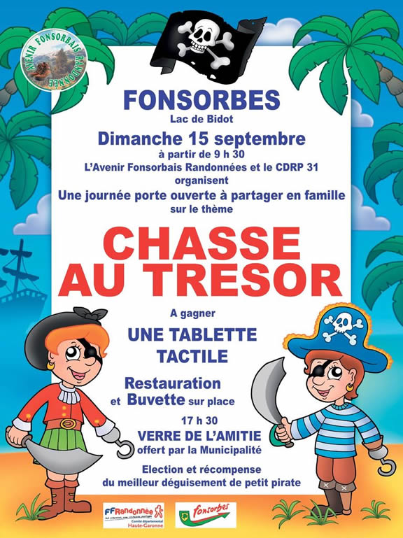 L'Avenir Fonsorbais Randonnée organise, avec le Comité Départemental de Randonnée Pédestre 31 (CDRP), une journée porte ouverte sur le thème de la chasse au trésor le dimanche 16 septembre 2012