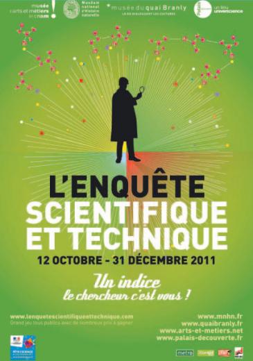 A l'occasion des 20 ans de la Fête de la Science et de l'année internationale de la chimie, le Muséum national d’Histoire naturelle, le Musée des Arts et Métiers, le Palais de la découverte et le Musée du quai Branly - Jacques Chirac organise un grand jeu sous forme d'enquête du 12 octobre au 31 décembre 2011 : L’enquête scientifique et technique.