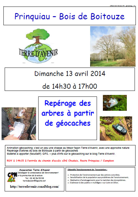 L'association Terre d'Avenir propose une animation geocaching le dimanche 13 avril 2014