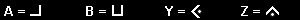 Exemple de substitutions, la lettre est représenté par les bordures (et éventuels points) qui l’entourent :