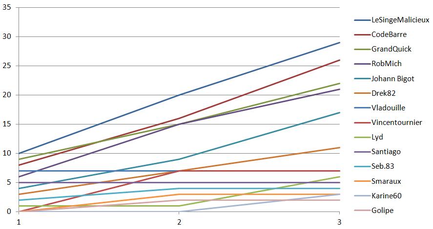 Le classement général à l’issue de cette deuxième énigme (ce classement est temporaire, puisque le classement de 2 autres énigmes reste à venir) :